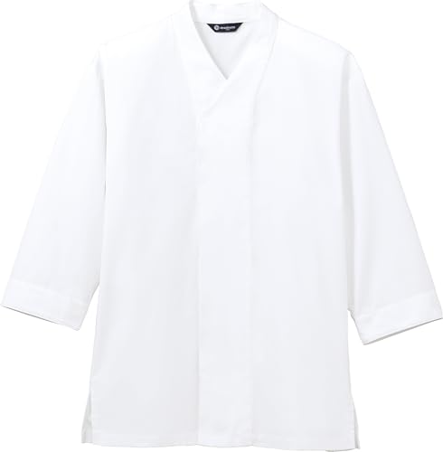 アルベの白衣(八分袖、男女兼用)は、SSから4Lまでのサイズ展開。フロントボタンあき、比翼仕立て、両脇スリット、背中タックで機能性も充実。カラーはホワイト(DN8908 C-1)。