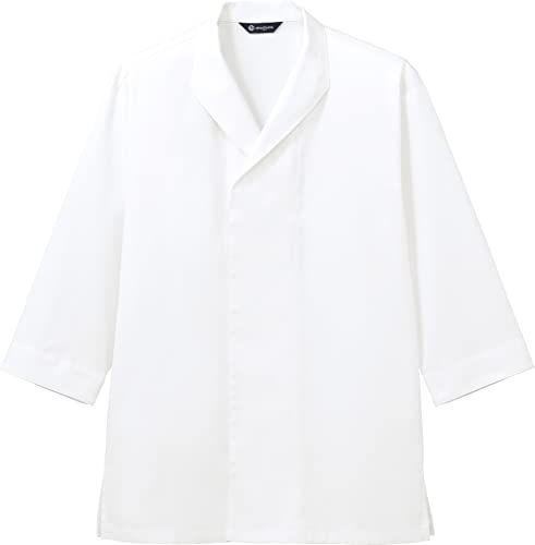 アルベの白衣(八分袖)は、男女兼用で、SSから4Lまでのサイズ展開。フロントボタンあきの比翼仕立て、両脇スリット、背中タックで快適な着用感を提供します。カラーはホワイトです。