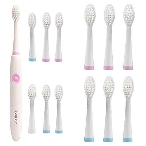 ケアイズムの電動歯ブラシは乾電池式で、替えブラシ6本付き。ピンク色のLDB-00702PKモデルに加え、LDB-007用の替えブラシが2本入りのパックが3個セットになっています。