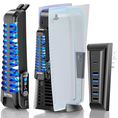 Kytok PS5冷却ファンは3段階のファン速度調整が可能で、5ポートUSBハブを備え、高速拡張が簡単に行えます。PS5両エディションに対応した外付け周辺機器です。