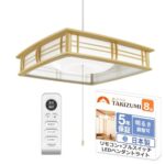 タキズミの省エネLED和風ペンダントライトは、約8畳に対応し、工事不要で簡単取り付け。リモコンとプルスイッチ付、5年保証で安心。業界トップクラスの省エネ性能。