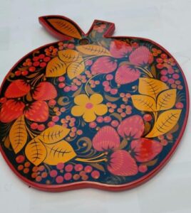 ホフロマ まな板 カッティングボード ロシア 民芸品 工芸品 りんご型 いちご絵