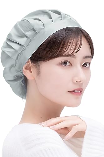 COCOSILKのナイトキャップは、100%シルク製のシンプルなデザインで、ロングヘアにもショートヘアにも対応。快適な就寝をサポートし、髪の摩擦を軽減します。カラーはアッシュブルー、サイズはLです。