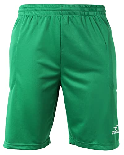 フィンタのサッカー・フットサル用ハーフパンツFT3024は、メンズ向けのゴールキーパー専用モデルです。グリーンカラーで、動きやすさを考慮したデザインが特徴です。