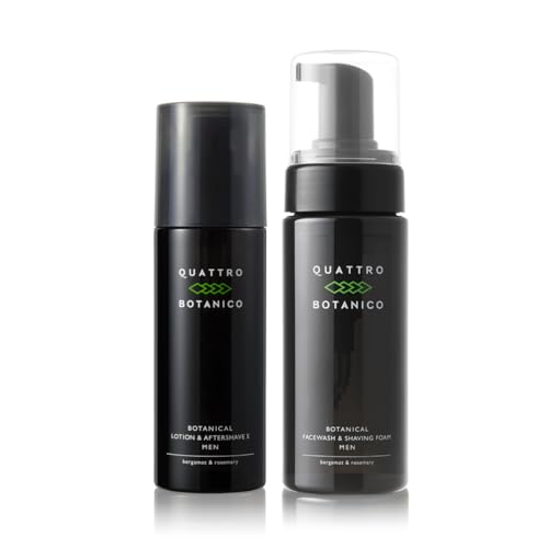 クワトロボタニコのメンズオールインワンセットは、ボタニカルロージョンSとフェイスウォッシュのポンプ式。洗顔フォームは泡タイプで、スキンケアや保湿に最適。乾燥肌の男性におすすめ。