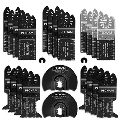 ブレード マルチツール用替刃24枚セット。木材、釘、金属切断に対応。日立、マキタ、ボッシュ等の多機種に互換。鋸刃とワッシャー付きの先端工具セット。