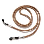 牛革製の男女兼用眼鏡チェーン。サングラスや老眼鏡にも対応したメガネストラップ。カーキ色のデザインで、ファッション性と機能性を兼ね備えています。