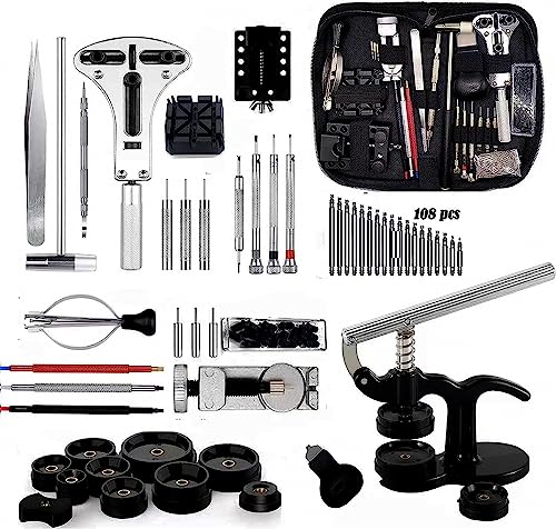 時計工具セットは、時計の電池交換や修理に便利なツールが揃った製品です。精密ドライバー、ピン抜き、ケースオープナーなどが含まれ、初心者からプロまで幅広く使用可能。