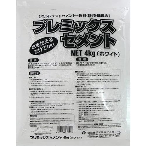 家庭化学のプレミックスセメントホワイト4kgは、使いやすい白色のセメントです。6袋セットで提供され、DIYや小規模な修繕工事に最適です。水と混ぜるだけで簡単に利用できます。