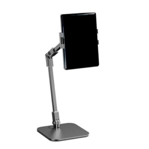 OATSBASF タブレットアームスタンドは、高さ調整可能(42cm~168cm)で360度回転。アルミ製で厚肉ベース、転倒防止機能あり。4.7~12.9インチのデバイスに対応。