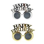 LIKENNY バースデーメガネ HAPPY BIRTHDAY パーティーグッズ 誕生日メガネ 面白い 写真小道具 目飾り 眼鏡 パーティーグッズ 2個セット(ゴールド/シルバー)の高価買取