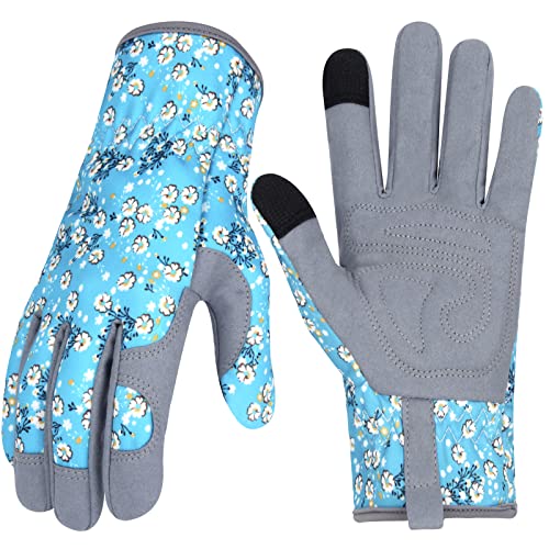 MERTURN レザーガーデニンググローブは、ユニークな花柄プリントとタッチスクリーン対応で、トゲ防止機能付き。庭作業に最適な女性用のガーデンギフトとしておすすめです。サイズL。