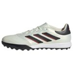 アディダスのフットサルシューズ、コパ ピュア 2 LEAGUE TF メンズ。カラーはベージュ、サイズは25.5 cm。優れたグリップ力と快適なフィット感を提供し、フットサルプレイに最適なデザイン。