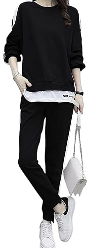 [エンプティオ] 上下セット トレーニングウェア トップス レディース マタニティ ジョガー ジョギング スエット セットアップ スポーツウェア ルームウェア 涼しい 速乾性 体操服 トラックジャケット トレーニング 伸びる ランニング ライン入り ウェア ウエストゴム サイドライン ストレッチ ヒップホップ ファスナーなし マラソン ジョガーパンツ ビッグサイズ フィットネス (M) ブラックの高価買取ITEM