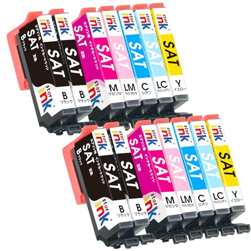 エプソン対応のSAT-6CLサツマイモインクは、14本セットの互換インクカートリッジです。大容量で残量表示機能があり、EP-715Aなどに対応。starink製で、個包装されています。