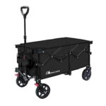 MOON LENCEのキャリーワゴンは、折りたたみ可能で超コンパクトなデザイン。大容量135L、耐荷重130kgで、アウトドアやキャンプ、BBQに最適。ワンタッチ収束型で使いやすい。ブレーキ付きのブラックモデル。