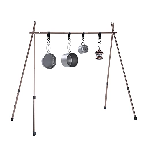 MOON LENCE ハンギングラックは、3段階の高さ調整が可能なアルミ合金製の軽量折り畳み式ランタンスタンドです。耐荷重約20kgで、持ち運びに便利な専用収納袋付き。アウトドアに最適です。