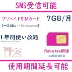 ViraDenkiのプリペイドSIMカードは楽天回線とau回線に対応し、1年間有効で7GBのデータ通信が可能です。SMS認証も可能で、5G/4G-LTEにも対応しています。