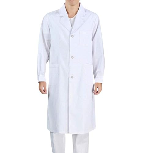 白衣 メンズ 男性用ドクターコート。医師・実験用・薬剤師・講師向けのロング丈シングルタイプ。ポケット付きで診察衣・実験衣にも最適。ホワイト、長袖、Mサイズ。