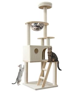 FEANDREAキャットタワーは大型猫向けで、多頭飼いにも最適。耐荷重20kg、143cmの高さを持ち、大型ハンモック付きで快適な休息スペースを提供します。