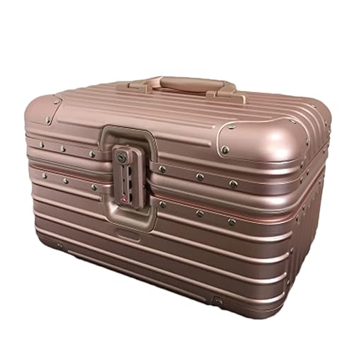 FLASHFOXの12インチ小型アルミメイクボックスは、全金属製で道具や化粧品の収納に最適。TSAロック搭載で安心のセキュリティ。ローズゴールドの美しいデザイン。