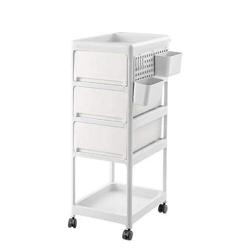収納カート キャスター付き ベビー用品収納ラック 2/3/4段 多機能 オムツ収納 ベビーワゴン フック付き 引き出し付き 移動式 取っ手 小物収納 キッチンワゴン おしゃれ 3色 (ホワイト,4段)の高価買取ITEM