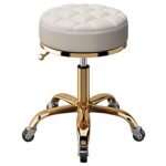 ラウンドスツールは、車輪付きで調節可能なスツールです。メディカルビューティーサロンやスパに最適。油圧ロッドとゴールドの5つの爪を使用し、高さは48-65 cmまで調整可能。カラーは白です。