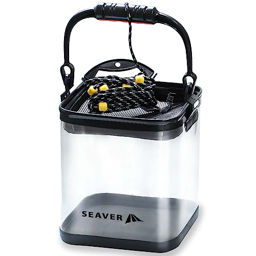 SEAVERの透明バケツは釣った魚が一目でわかる3点セット。水汲み、折りたたみプライヤー(20cm、24cm)、フィッシュグリップが含まれており、便利で実用的な釣り道具です。