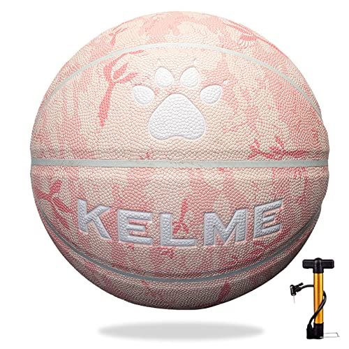 KELMEのバスケットボール7号球は、屋内外両方で使用可能。PU素材を使用し、耐久性に優れた練習用ボール。大人や青少年向け。カラーはピンクとホワイト。