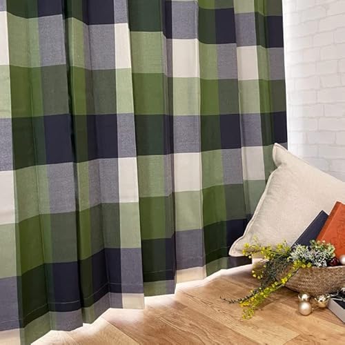 curtain Rainbow 遮光裏地付きリネン調ナチュラルチェックカーテン&レースカーテン4枚セット(幅100×丈178cm グリーン)の高価買取