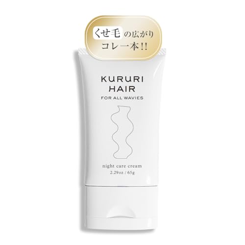 KURURI HAIRナイトケアクリームは、くせ毛やハイダメージに特化した洗い流さないトリートメントです。髪質改善とスタイリングが同時にできる日本製のモイストミルククリームです。65gサイズ。