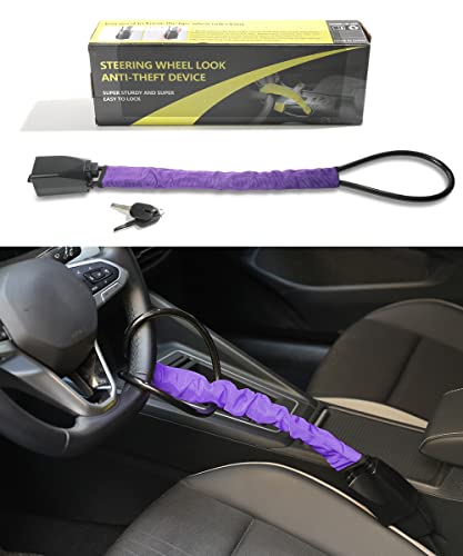 YAKEFLY (ヤケフライ) ハンドルロック 高強度 車のハンドルロック 盗難防止デバイス キー2個付き カーセキュリティデバイス カーロック 車の盗難防止 ユニバーサルシートベルトロック ほとんどの車に対応 (パープル)
