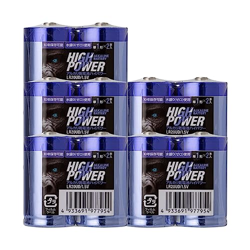 乾電池(ハイパワー 単1形 10本セット)は、2パックに分かれた5本ずつのセットです。高いエネルギー供給能力で、様々な電子機器に最適です。長持ちする寿命を誇り、信頼性が高いアイテムです。