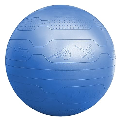 PROIRON バランスボール 65cmは、トレーニングガイド付きで、耐荷重300KGのアンチバースト仕様。厚い設計で、ジムボールや椅子として使用可能。カラーはマリンブルー。