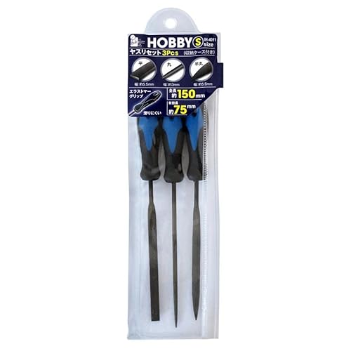 BIGMANのホビー用ヤスリセットは、丸型、平型、半丸形の3本セットです。鉄工作業や細かい研磨に最適で、初心者から上級者まで幅広く使用できます。