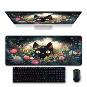 ゲーミングマウスパッドXXL拡張アニメーションマウスパッド80x30cm、大きなかわいいビッグコンピュータマウスマットデスクパッド滑り止めゴムベースとステッチエッジのホームオフィス-花猫