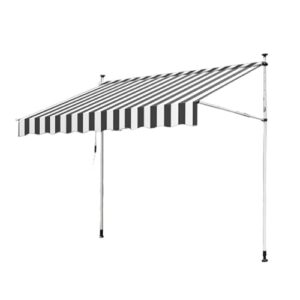 日除けシェード オーニング 巻き取り式 サンシェード 突っ張りオーニングテント 軽量&簡単設置 工事不要 紫外線対策 UVカット 撥水加工 雨よけ テラス・庭・ガーデン・カフェに最適 景観を損ねないナチュラルデザイン (300*120cm,黒と白のストライプ) [並行輸入品]