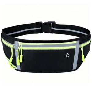 ランニングポーチ マラソン ポーチ 軽量 揺れない スマホ対応 防水 防汗 大容量 4ポケット 水筒ポーチ イヤホンホール 反射材付き おしゃれ ベルト無段階調整可能 ペットボトル収納可能 夜間活動 ジョギング ウォーキング 登山 釣り メンズ レディース (ブラック)