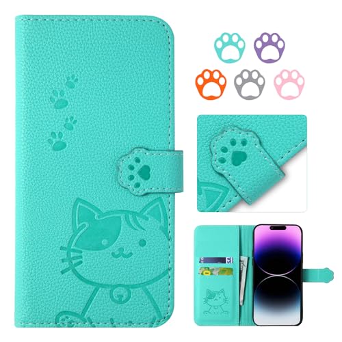 YIMASE Xperia 10 V ケースは防塵・手帳型で、すべての機能に簡単アクセス。かわいい猫柄のデザインでスタイリッシュ。カラーはグリーン。
