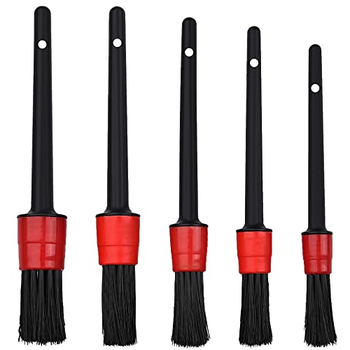 洗車ブラシ5本セット。ホイール用、パーツクリーニング用、隅々掃除用など多機能。乾湿両用で車内外の凹凸部や換気口、スイッチ周りの汚れを簡単に除去。プロ仕様の細部洗浄に最適なカー用品。