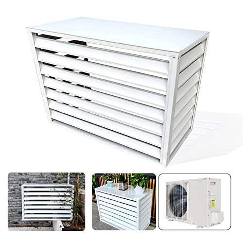 エアコン室外機カバーは幅100×奥行50×高さ70cmのアルミ製で、大型エアコンに対応。ガーデンやバルコニーに飾りとしても最適。色は白で、エアコンカバーとしてだけでなくフラワースタンドとしても利用可能です。