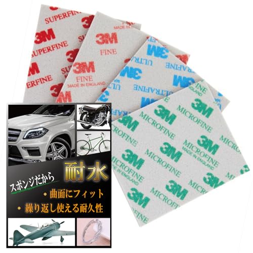 [正規品]3mスポンジサンドペーパーは、耐水性に優れた紙やすりで4枚セットになります。サビ落としや細かい仕上げに最適な製品で、使いやすいミックスサイズです。