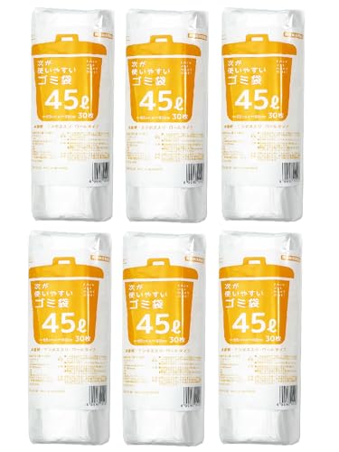 ケミカルジャパンの半透明ゴミ袋(約45L、HDRE-45-30)。30枚入り×6個セット。耐久性があり、使いやすいサイズで、ゴミ箱用アクセサリとして最適です。