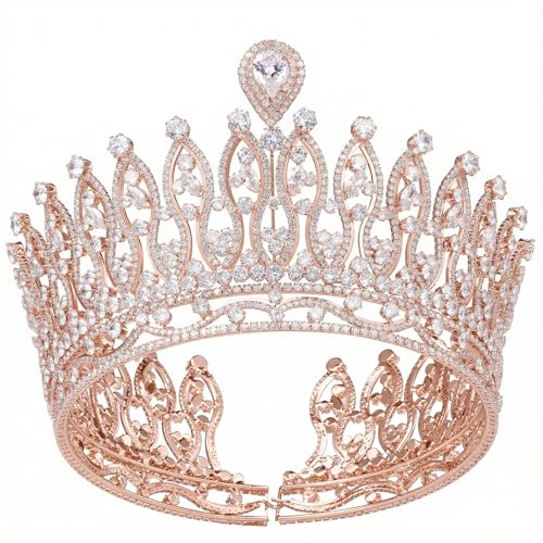 QXMYOOのビッグウェディングティアラは、ローズゴールドでキュービックジルコニアを使用。花嫁やミスコンテスト、プロムパーティーに最適なラグジュアリーなヘアアクセサリーです。