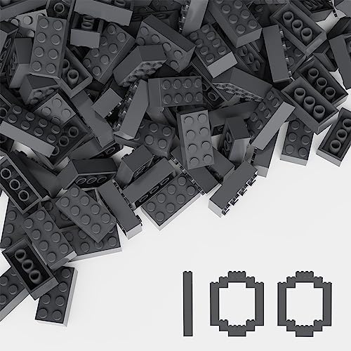 クラシックビルディングブリック100ピース、2×4サイズのグレー深めレンガブロック。LEGOに対応し、6歳以上向けのクリエイティブな子供向けおもちゃです。