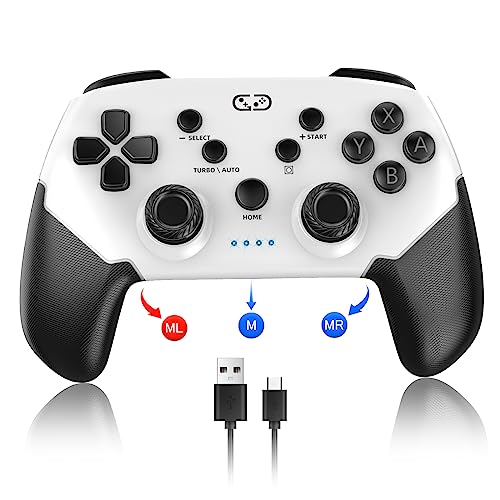 Bingoodsのスイッチコントローラーは、背面ボタン、マクロ編集、自動連射機能を搭載。Bluetooth5.0でワイヤレス接続し、6軸ジャイロセンサーも内蔵。Switch1/2、Android/iOS13.0+/PCに対応し、日本語説明書付き。