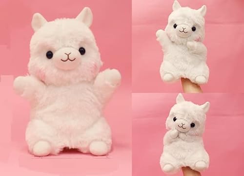 アミューズのアルパカッソハンドパペット、しろちゃんは全長約24cmの可愛らしいぬいぐるみです。柔らかい素材で、癒しを感じること間違いなし。遊びやおままごとに最適なアイテムです。