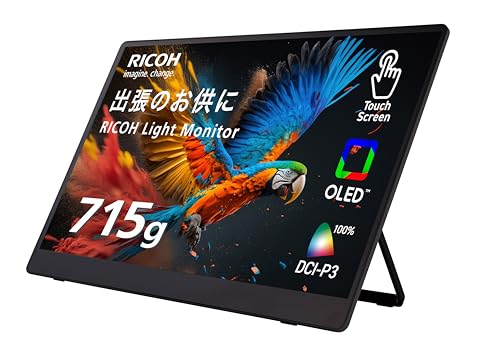 リコー RICOH Light Monitor 150BWは、15.6インチの有機ELポータブルタッチディスプレイです。軽量で薄型、Type-C接続に対応し、自立型です。無線接続も可能で、DCI-P3100%の高色再現性を誇ります。