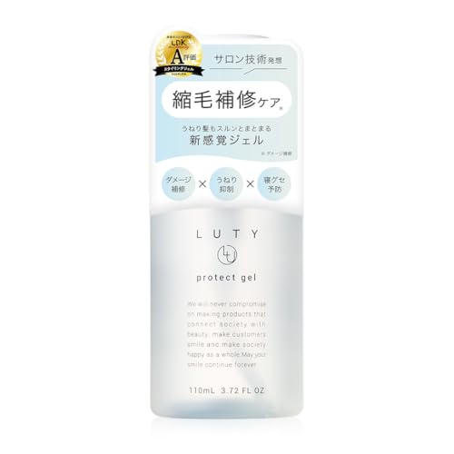 LUTY ルーティー プロテクトジェルは、縮毛やうねりをコントロールし、ストレートヘアを実現。癖毛の直しや寝癖直しに最適な美容室専売品。容量は110ml。