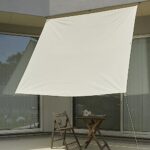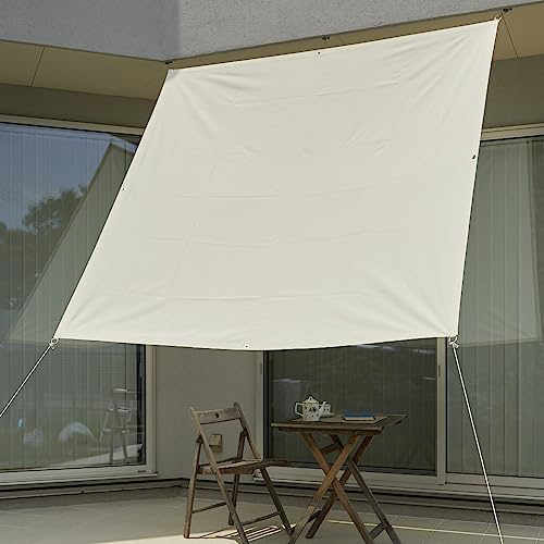 サンシェードは紫外線90.1%カット、遮光率85%の日よけシェードです。ベランダ用でサイズは1.95m×2m。色はダークブラウンで、アイボリーの撥水加工があります。